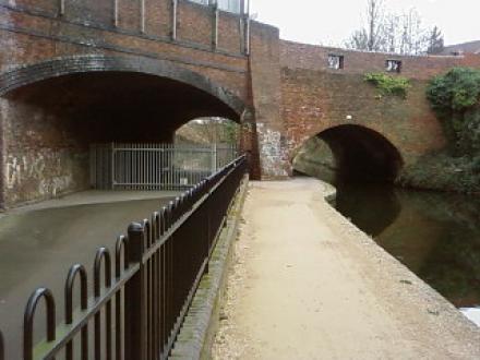 Worcester & Birmingham canal along side old branch line track bed that came off at Five Ways Station to Holiday Street Good Depot. (long since gone).