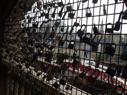 Padlocks on pedestrian walkway
