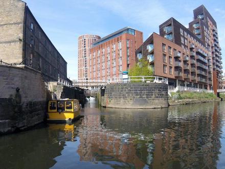 If coming upstream from Leeds Dock it is advisable to have crew take the free taxi to the lock and have it ready when you arrive as the taxi sits on the lock landing preventing crew access. Take care with the wind as it gusts and swirls badly here. If the taxi is at the landing it is best to stay well to right when entering the lock and it is best to have both gates open.