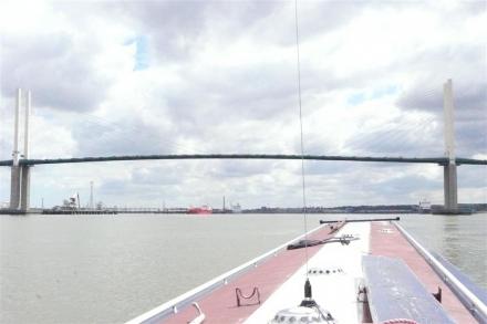 This photo is one of 2 of Queen Elizabeth II Bridge on the River Thames (tidal section below the flood barrier) [Previous | Next]