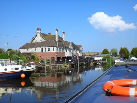 The marina moorings start after the pub heading north.