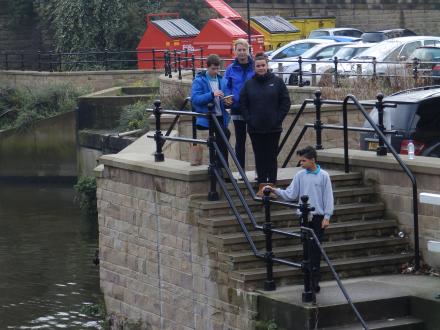 Additional steps above the landing stage to cross the Leeds Flood Alleviation heightened river defences