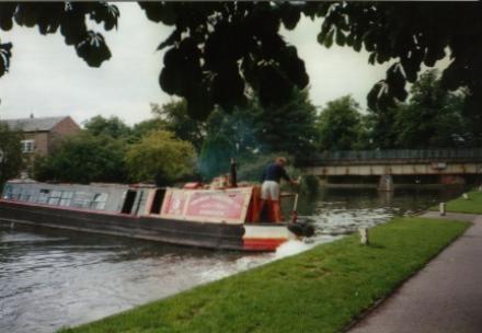 The notorious "temporary" bridge at Newbury was erected during the second world war. It was finally raised in spring 2001. The boat shown turning here is Tyseley the touring home of the Mikron Theatre Company. As a "friend" of Mikron, I recommend them to you.