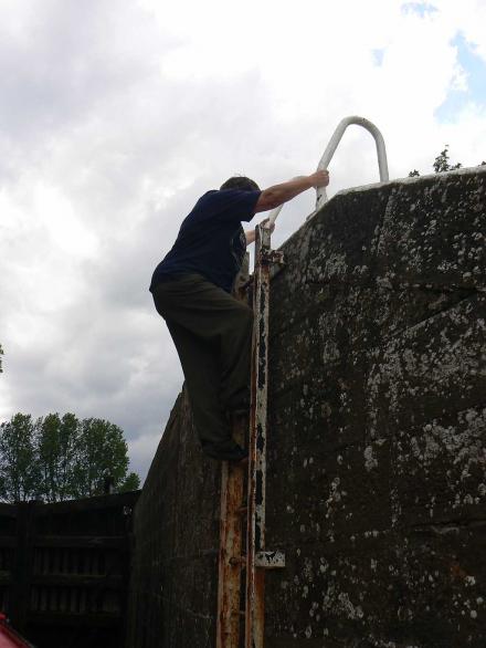 There is no landing below the lock, this ladder is the only way to get on or off the boat