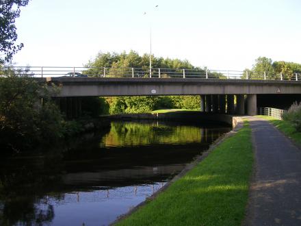 This photo is one of 2 of Greenfield Road Motorway Bridge No 142A on the Leeds and Liverpool Canal (Main Line - Wigan to Leeds) [Previous | Next]