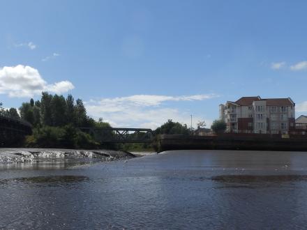 Bridge over the tidal mud with River Tyne upriver to the right of the image
