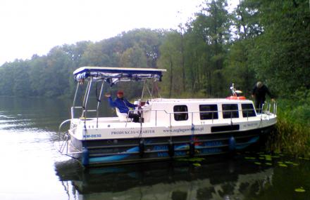Stare Jablonki trip boat jetty is about a kilometre behind,camera left. Mr A West and Mr I McCarthy feature in this rather poor quality phone camera image.