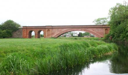 This bridge, originally constructed in 1860 was built for the nearby granite mines. It now unfortunately only carries a conveyer belt from the near by mine to the main line a mile or so to the left. Image taken looking upstream (south).