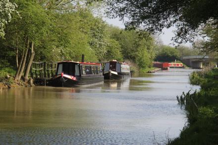The 48hr moorings are in the foreground, with two water points in front of Sutton Cheney Wharf winding hole and Sutton Wharf Bridge No.34 - which are visible in the background. There is a single 24hr mooring between the water points and the wharf.