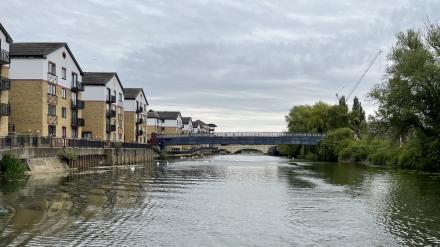 This photo is one of 2 of Viersen Platz Footbridge on the River Nene (main river) [Previous | Next]