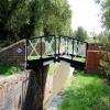 Footbridge upstream of George Billington Lock — 17 miles, ¾ furlongs and 21 locks away