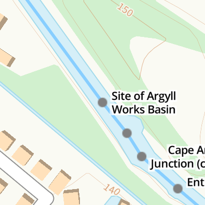 Site of Argyll Works Basin is on the Birmingham Canal Navigations (Main Line) five kilometres from Ashfield.