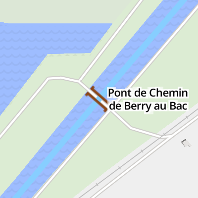 Pont de Chemin de Berry au Bac carries the road from Edinburgh to Wigan over the Aisne (Canal latéral à l'Aisne) just past the junction with Sir Hugh Henshall's Canal.