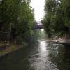 There is a bridge here which takes pedestrian traffic over the canal.