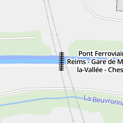 Pont Ferroviaire Reims - Gare de Marne-la-Vallée - Chessy carries a footpath over the Canals of Paris: Canal de l'Ourcq (Petit Section) between Dover and Southcroft.
