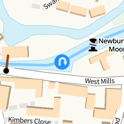 Travel to Northcroft Lane Arm, then on the River Kennet to High Bridge Reading, then on the River Thames (River Kennet) to Thames - Kennet Junction (Kennet Mouth), then on the River Thames (below Oxford) to Thames & Kennet MarinaNearest place to turn