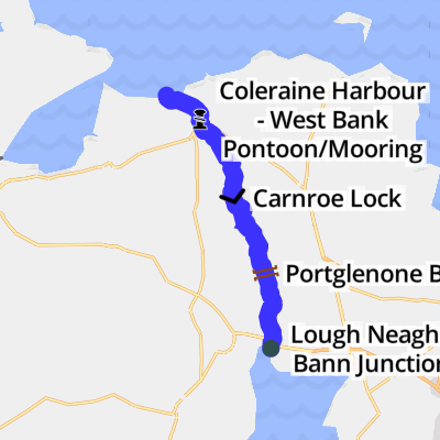 The Lower River Bann flows from Lough Neagh, the largest freshwater lake in the British Isles, for 60 km (35 miles), to the Barmouth between Castlerock