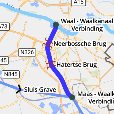 It runs for 0.03 kilometres through 2 locks from Waal - Waalkanaal Verbinding (where it joins the Rhine - (Waal)) to Maas - Waalkanaal Verbinding (where it joins the Maas (Meuse) - (Maas)).